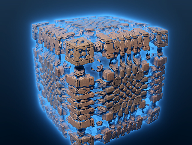 Melting scale 3.0 mandelbox raytraced using Buddhi's DE.