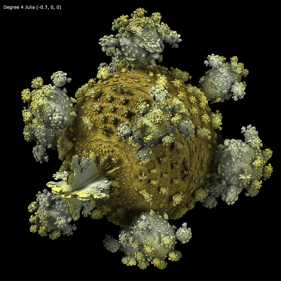 So I know using points from the Julia set has been tried (ie cross sections from the full 4D ... thing...), but what if we choose our cross-sections carefully, looking for the properties described above?