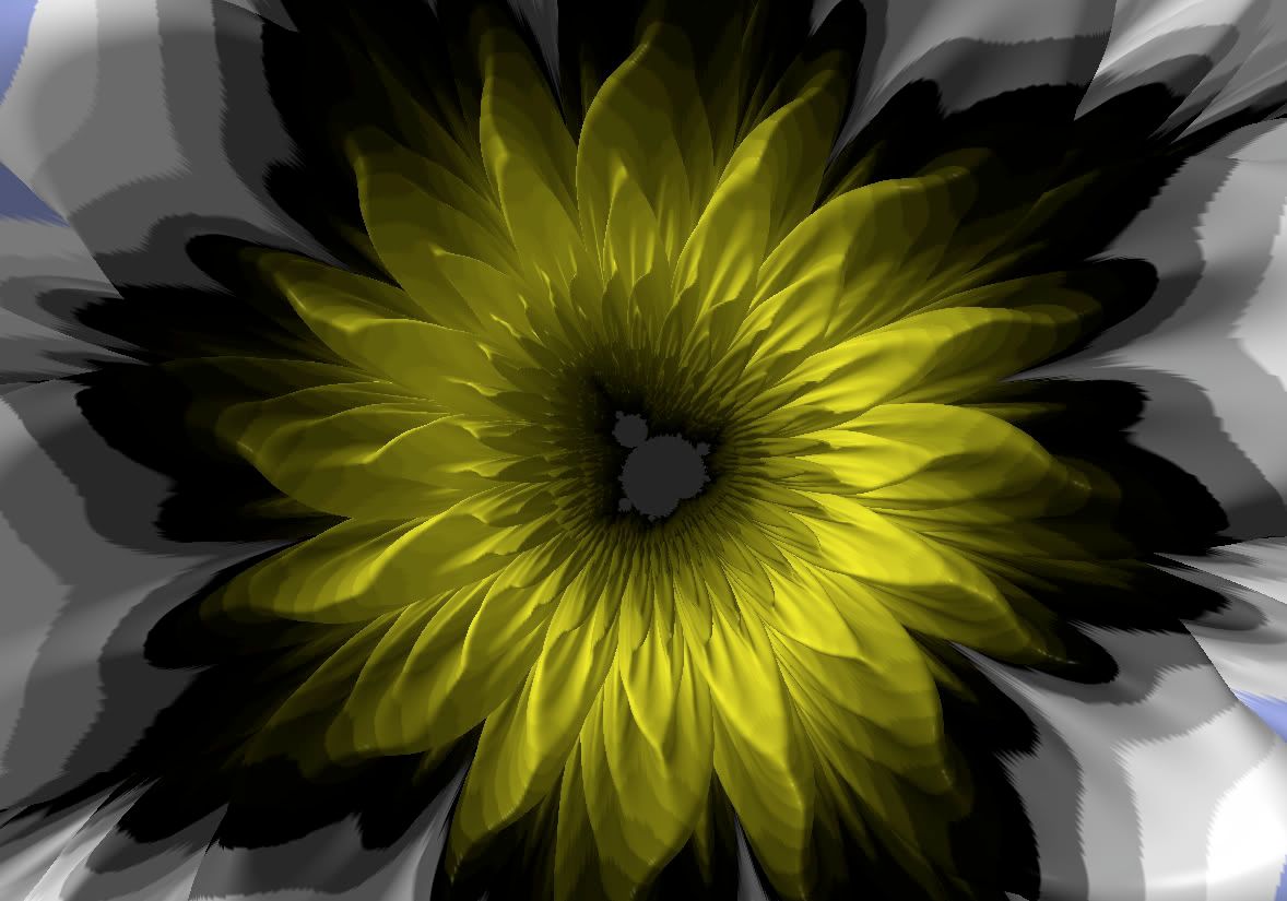 Nice image. Do you like the bands of color, or would you prefer smooth color transitions? Thanks! Glad you liked it. The bands don't bother me, it's just the actual colors involved. Easy enough to edit. I will definitely play around with the coloring ideas you mentioned though. I just felt the blue was out of place in the color scheme of this image. I could have cropped it, I suppose. But I'll just play with the actual palette. If you want the file I'll upload it anyhow - it's no work at all to do so. This was mostly an effort to make a flower like image from a Mandelbrot instead of a Julia fractal. I may need to resort to an image editor to bring out the baby Mandebrot in the center though. Does FractalWorks have "Inside" and "Outside" color mapping like I have seen in some Fractal Generators? That would allow the baby brot to be any color at all, or even a pattern. It looks perfectly clear on my laptop, but at home it is very hard to see the center of the image. It's the Gamma Correction on the laptop I guess.