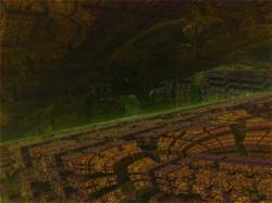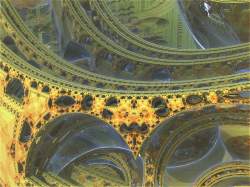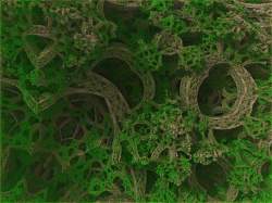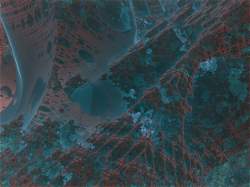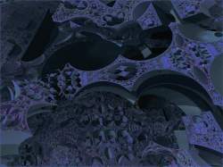 Mandelbulber does very nice renders, but so far none of the software I've tried has an ideal navigation interface. Ideal, I think, would be a) clicking took the camera viewpoint halfway to the nearest part of the fractal where you clicked -- the z-buffer theoretically allows this, or a single raytrace could be done at the clicked pixel -- and rotated (first horizontally, then vertically) to center that point in the view, and b) the camera could be rotated in place, without moving it. As near as I can tell, Mandelbulber has a target point and puts the camera "zoom" units from it in the direction determined by the rotation, so changing the angles actually moves the camera, swinging it about on its invisible tether, and click-zooming sometimes has unpredictable results since it uses the DE values instead of the actual, measured distance to the specific fractal point clicked on. All the others' navigation is, if anything, worse. So, a constructive suggestion for 0.44: the xyz coordinates become the camera position and the angles set its facing direction. A third, roll rotation that keeps the point in the center of the view and is applied last might be nice to add, too. The zoom would continue to affect the scale of fog and DOF effects and near-plane clipping; the default after a click-move could simply be the distance to the fractal point targeted. Other nice-to-haves would include a gradient editor, ability to animate parameter morphs and not just camera movement, ability to add a light source near but offset from the camera (distance left-right and distance up-down from camera, scaled by zoom), and ability to generate a stereo image pair (separation parameter, multiplied by zoom, determines two viewpoints left and right of the current camera pos). Movement buttons to strafe the camera or march it forward or back in steps of zoom/10, perhaps, too. This would yield much more "first person shooter" type control over the camera. smiley