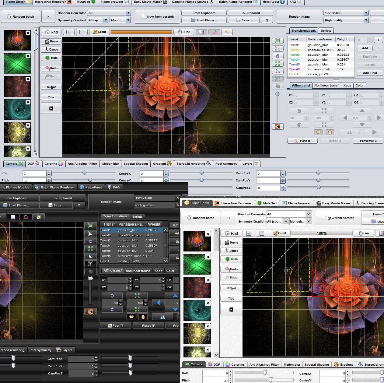 - transforms in the editor may now be dran in color (same colors as in Apophysis for your convenience), this can be changed in the prefs, see tinaEditorControlsWithColor