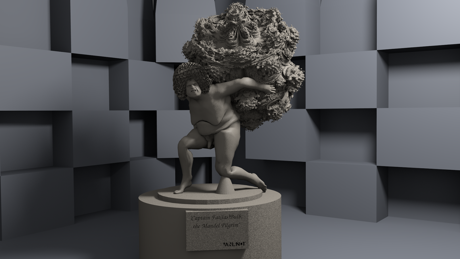 With the wonderful "MakeHuman" character generator, i made a character that i put in some from my creations : Cap'tain FatBulb, the Mandel Pilgrim :